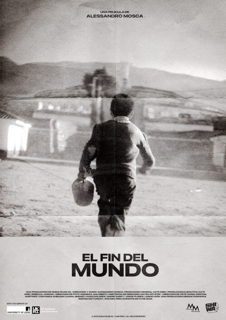 [FR] Alessandro Mosca a étudié le cinéma à l’Université Carlos III de Madrid. Il a collaboré à divers projets audiovisuels avec des réalisateurs péruviens. À la suite d’une recherche approfondie menée à Yungay, au Pérou, il a décidé de se lancer dans son premier court métrage professionnel, El Fin del Mundo, présenté en compétition officielle au Festival international de Shanghai. Il travaille actuellement sur le scénario de son prochain long métrage, Señora Ley.